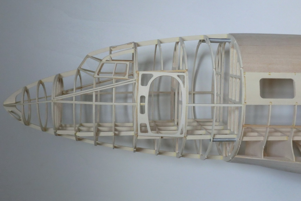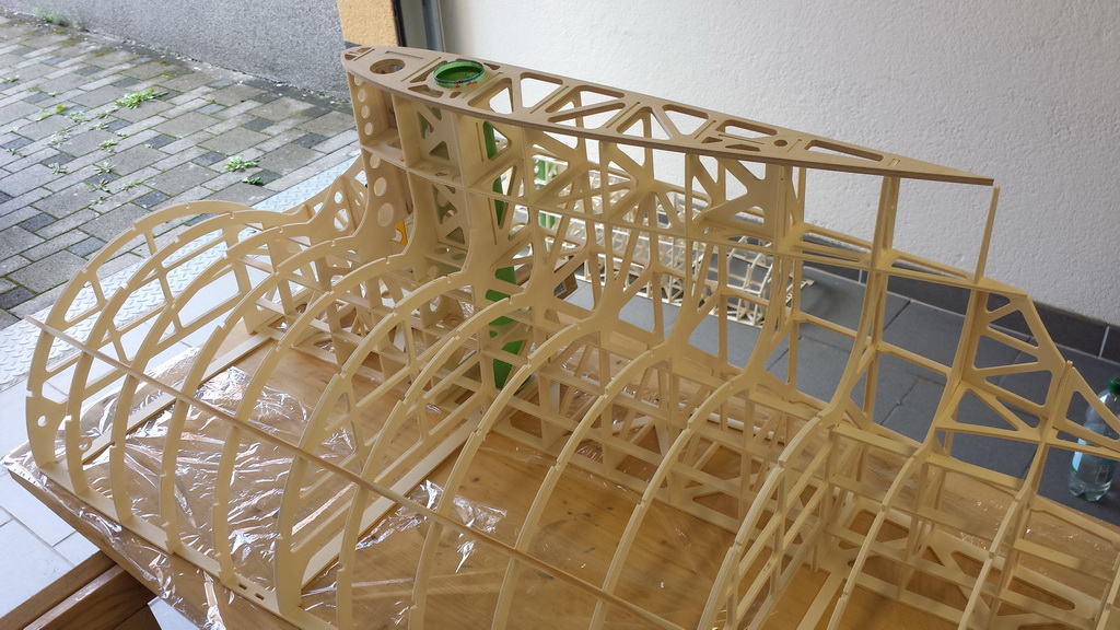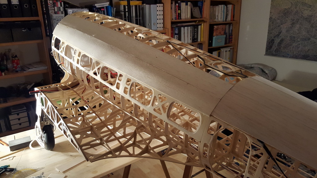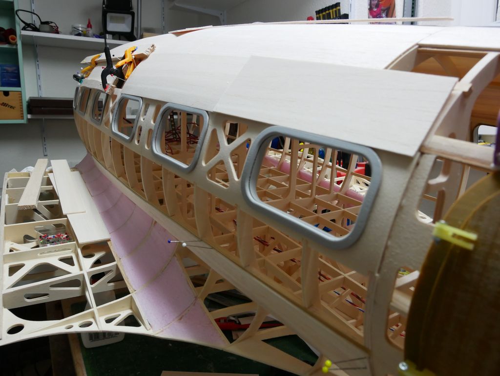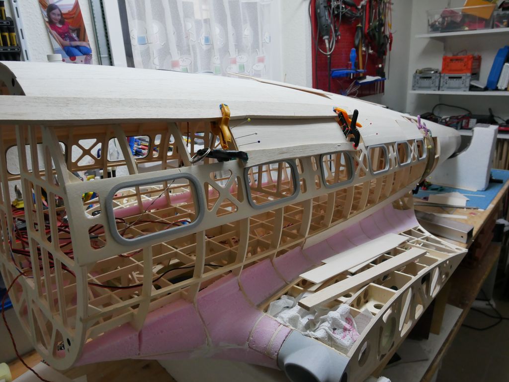 Inzwischen ist auch Leiterwerk und Cockpit teilweise beplankt.