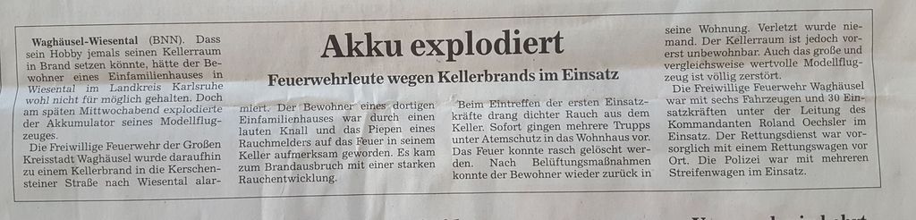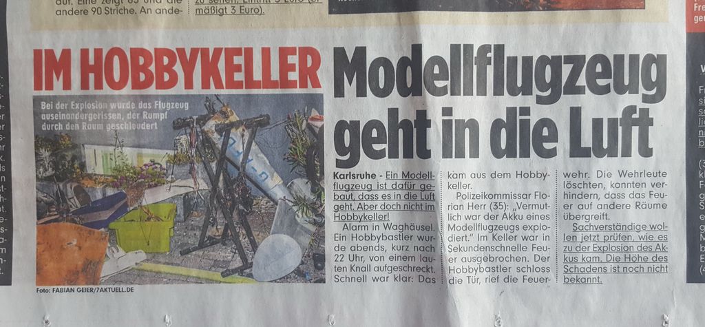Zwei Wochen später zerstört ein Lipo Brand im Haus den Keller und auch große Teile vom Modell.