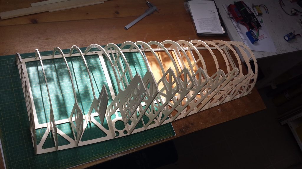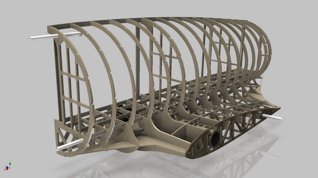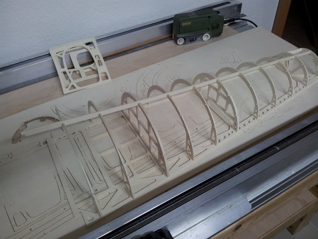 Sep-2013: Der Rumpf Rohbau nimmt gestallt an. Alle Rumpfteile sind gefräst und können zum Mittelteil verklebt werden.