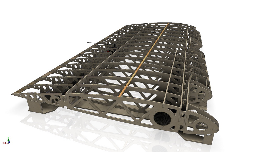 Nov-2013: Die Flächen werden begonnen. Zunächst nur die Segmente mit den Landeklappen und den Motorgondeln.